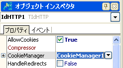 TIdHttpコンポーネントのCookieManagerにTIdCookieManagerを設定します。