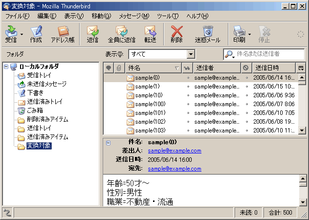 Thunderbirdを起動し、処理を行うメールを一つのフォルダに入れておきます。
