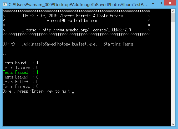 Windows上でDUnitXを使って、フォトアルバムに写真を登録するコードをテストしたい。